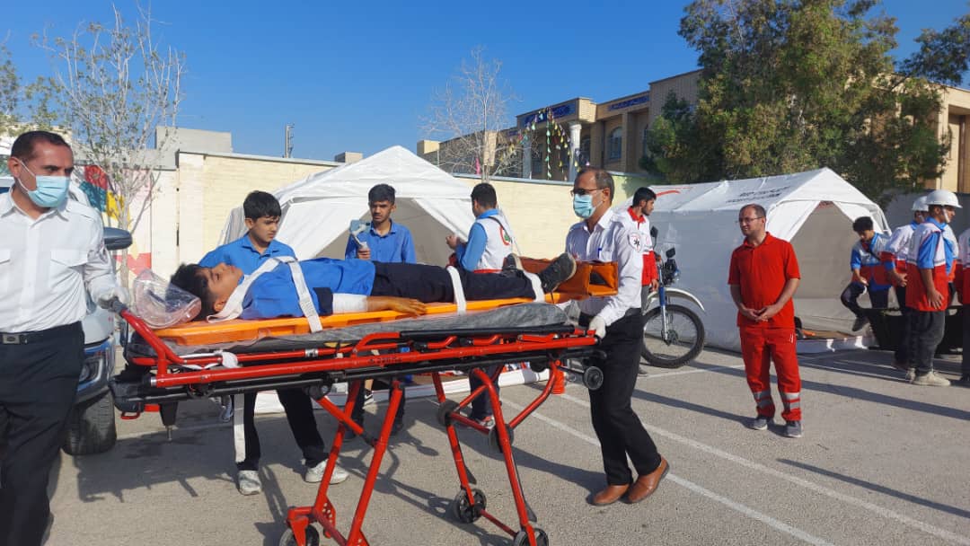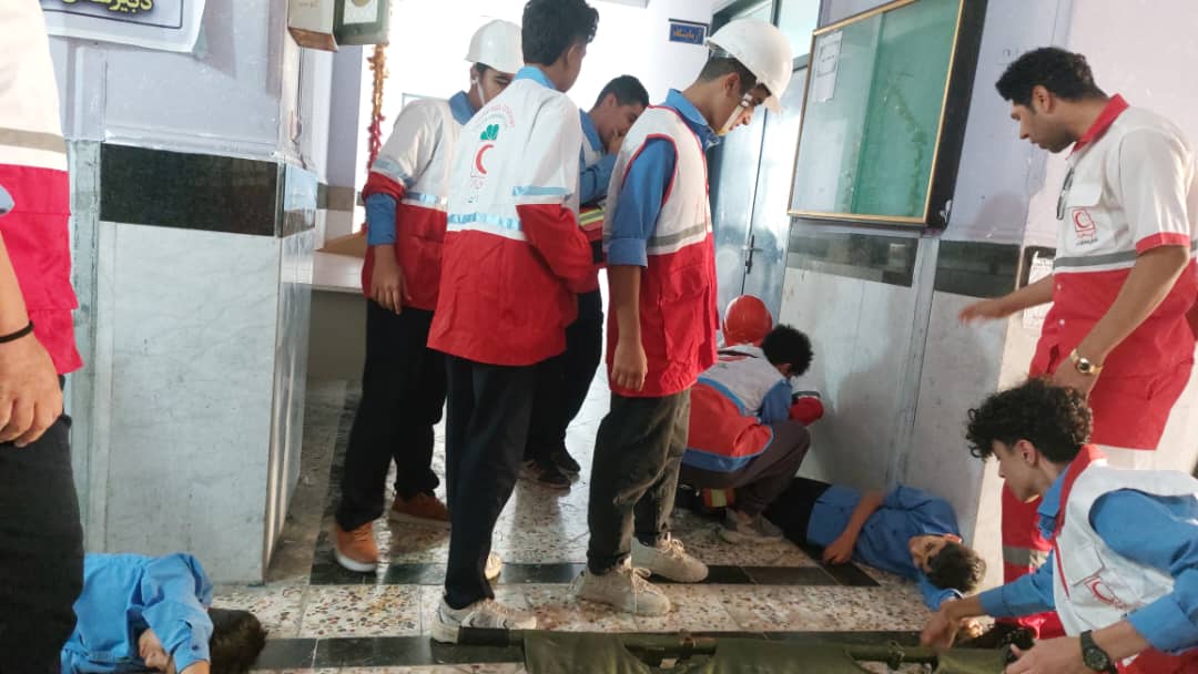 رزمایش پدافند غیرعامل با حضور فرماندار و مسئولان شهرستان کنگان در مدرسه شهید پرهیزکار برگزار شد