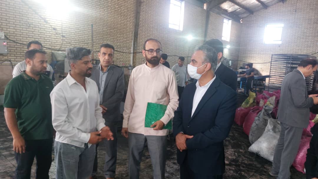 بازدید فرماندار کنگان از کارگاه تولیدی زغال در ناحیه صنعتی بنک؛ تأکید بر تسهیل‌گری و حمایت از تولید