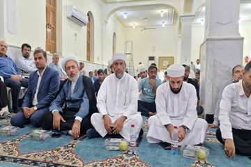 به مناسبت میلاد با سعادت پیامبر اعظم حضرت محمد مصطفی (ص) و آغاز هفته وحدت، مراسم جشنی با حضور فرماندار، امام جمعه شهرستان، ائمه جمعه اهل سنت، روحانیون، مسئولین شهرستانی و اقشار مختلف مردم در مسجد جامع نور اهل سنت کنگان برگزار شد.