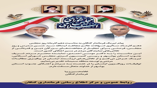پیام تبریک فرماندار کنگان به مناسبت دهم آذرماه؛ روز مجلس